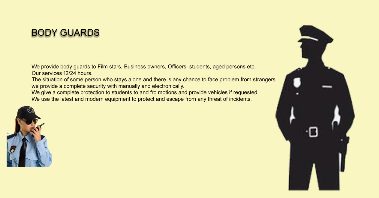 Body Guard   Doctors online   Assets Verification   24 hours watching tower